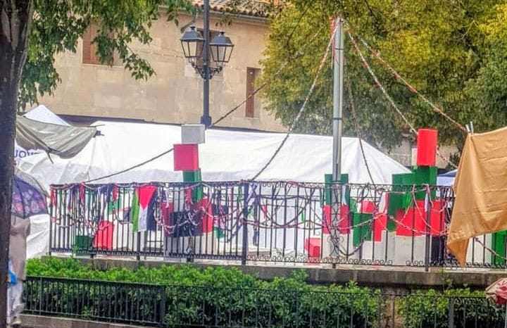 Miguel Martínez, ha denunciado la decisión de la alcaldesa socialista Margalida Fullana de vestir la plaza del pueblo con banderas pro Hamás.