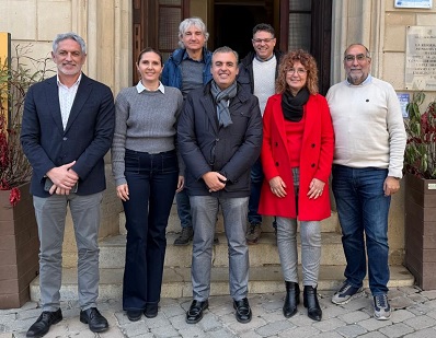 La alcaldesa de Porreres, Xisca Mora, y con el equipo directivo del IES