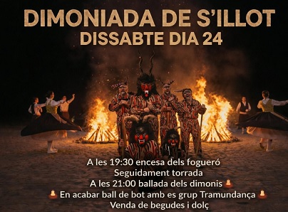 - El próximo sábado día 24 de enero se celebra la denominada Dimoniada de S'Illot y Cala Morlanda, desde las 19:30 horas, torrada, dimonis y ball de bot con el grupo Tramudança